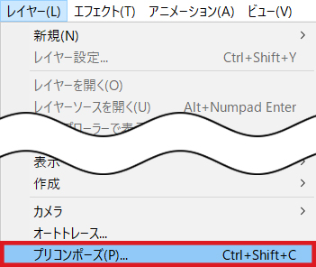 メニューの「レイヤー」>「プリコンポーズ」を選択します。